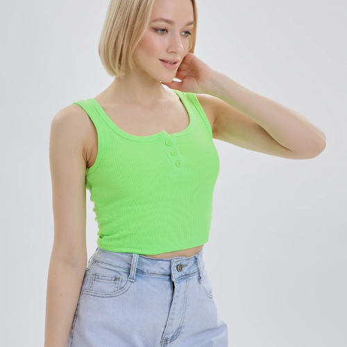 Not all crop tops are created equal, and the Mercan Button Up Crop Top in neon green makes that clear from the jump. Bold in color but streamlined in shape, this piece walks the line between standout and staple. Made with a soft ribbed texture and front button detailing, it channels easygoing summer energy that can carry through every season.