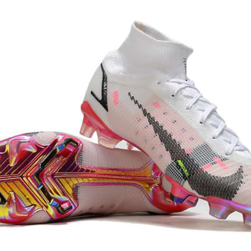 Designed with bold detail and built for pure acceleration, the Nike Mercurial Superfly 8 Elite FG Rawdacious is a standout boot for players who love to drive forward. The white upper is balanced by hot pink and chrome accents underfoot, with a visual energy that mirrors its high-speed purpose.